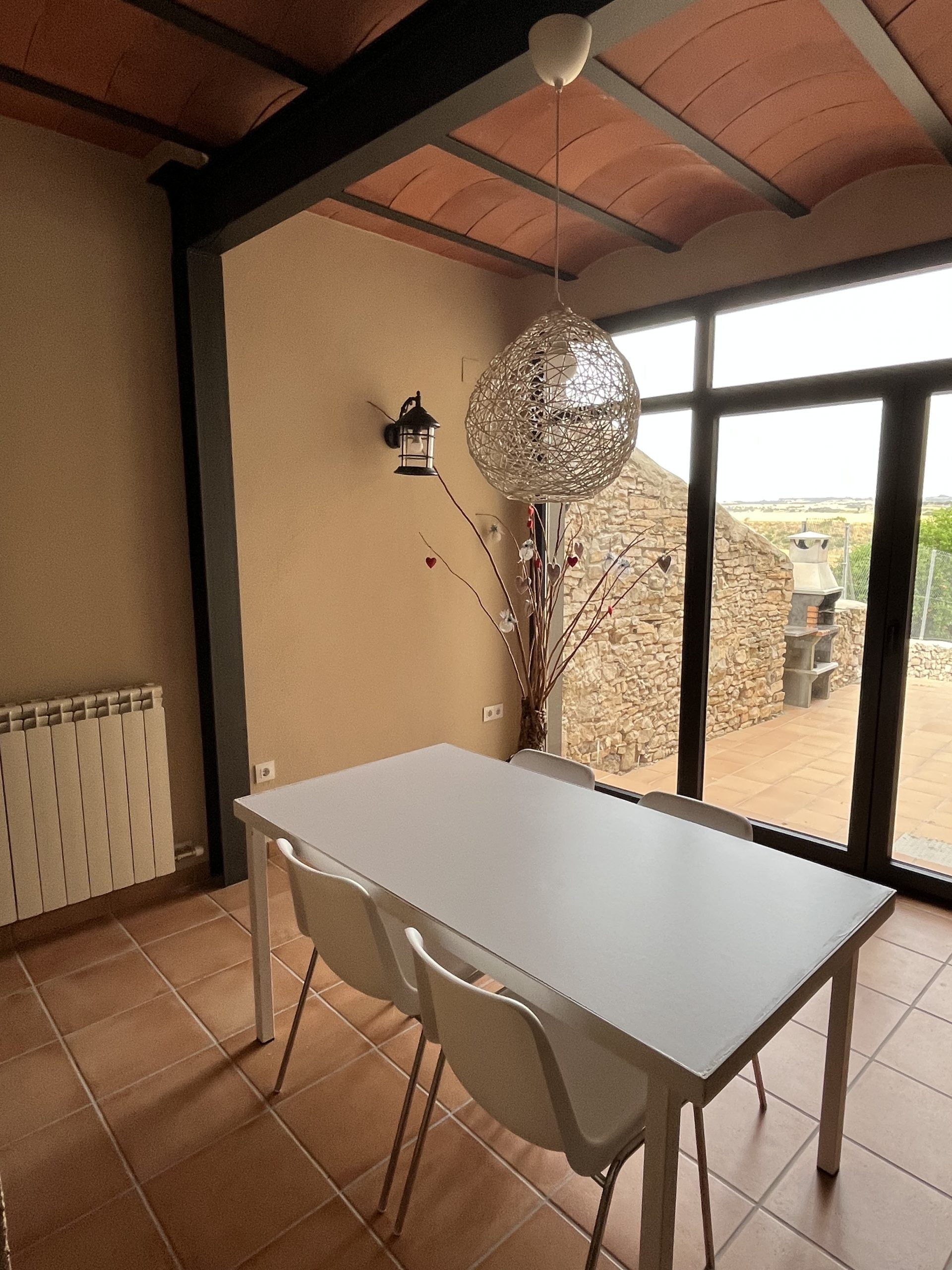 - Àmplia terrassa amb fabuloses vistes als camps de la Segarra. S’accedeix per la sala d’estar i està equipada amb taula i cadires.